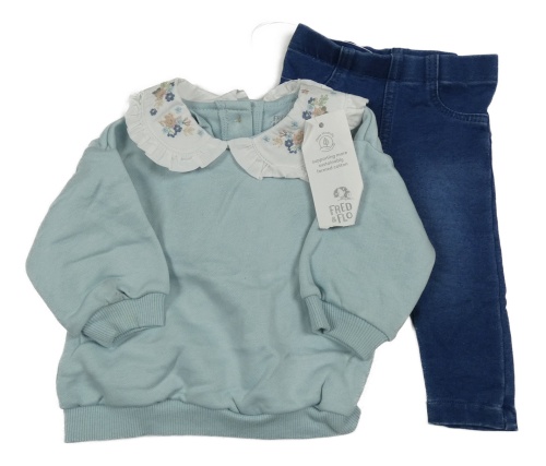Nové - 2set - Svetlomodrá mikina s květovaným límcem + Tmavomodré tregíny riflového vzhledu F&F