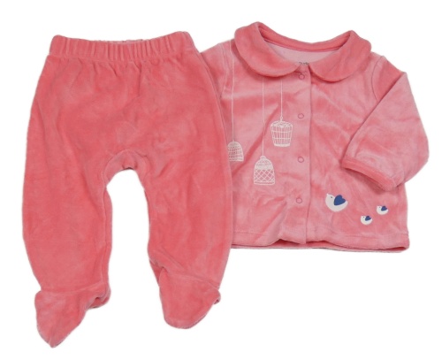 2Set - Ružová zamatová prepínaci mikina s vtáčky a límečkem + polodupky Vertbaudet