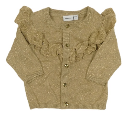 Béžovo-zlatý melírovaný prepínaci sveter s volánikmi name it.
