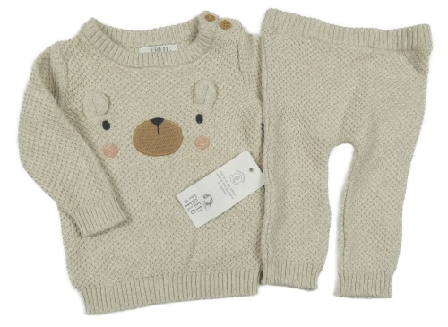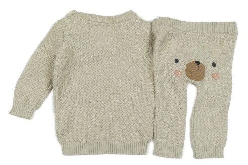 • Nové - 2Set - Světlešedobéžový melírovaný vzorovaný sveter s medvídkem + nohavice F&F