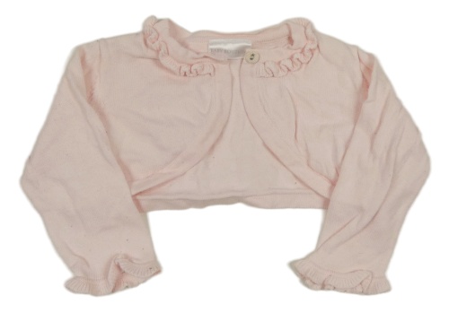 Světlerůžové propínací svetrové bolérko s volánikmi BABY BOUTIQUE