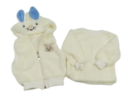2 set - biela plyšová mikina + prepínaci vesta s kapucí - králik