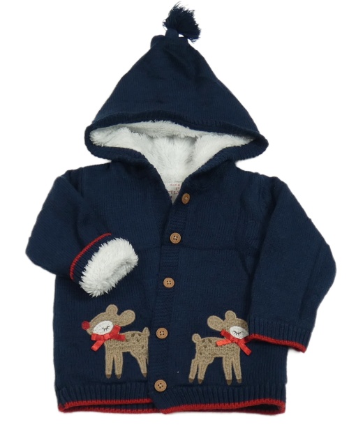 Tmavomodrý zateplený prepínaci sveter so sobmi a kapucňou F&F