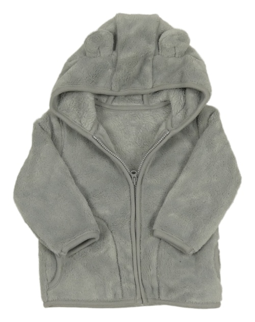 Sivá chlpatá prepínaci mikina s kapucňou s uškami