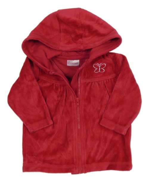 Červená zamatová prepínaci mikina s motýlom a kapucňou Cherokee
