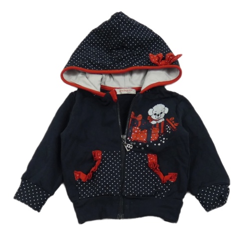 Tmavomodrá prepínaci mikina s psíkom a bodkovaná ou kapucňou