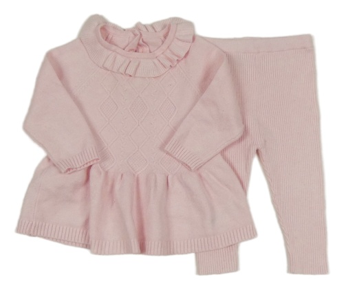 2set - Ružová svetrová vzorovaná tunika s límečkem + ružové rebrované legíny Nutmeg