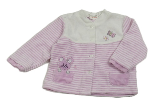 Bielo-ružová zamatová prepínaci mikina s pruhmi a myškou
