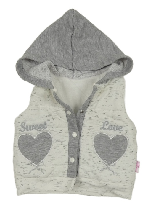 Sivo-biela melírovaná zateplená tepláková vesta so srdiečkami a kapucňou