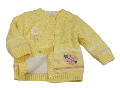 Žltý zateplený prepínaci sveter s lienkou a kvetinou Nutmeg