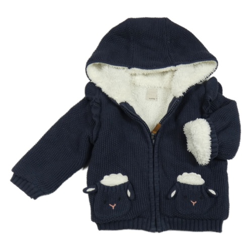 Tmavomodrý prepínaci zateplený sveter s ovečkami/kapsami a volánikmi a kapucňou John Lewis