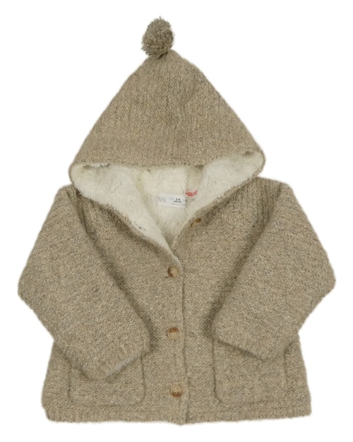 Béžovo-sivý melírovaný prepínaci zateplený sveter s kapucňou ZARA