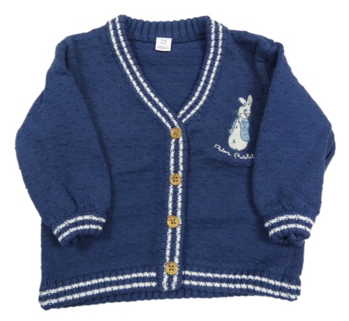 • Tmavomodrý vzorovaný prepínaci sveter s králíčkem - Peter Rabbit a pruhmi M&S
