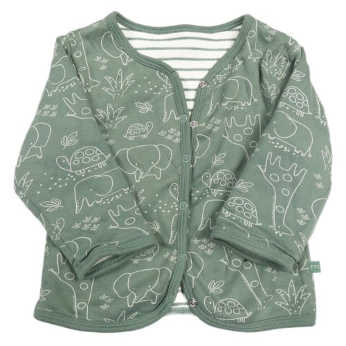 Khakišedá prepínaci podšitá obojstranná mikina so zvieratkami