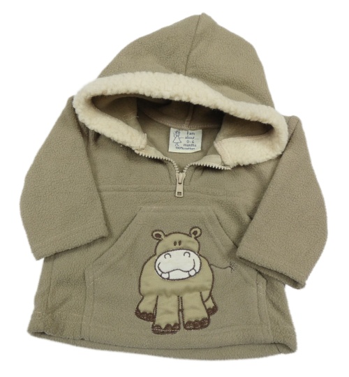 Hnedošedé á fleecová mikina s vreckom s hrošíkem a kapucňou
