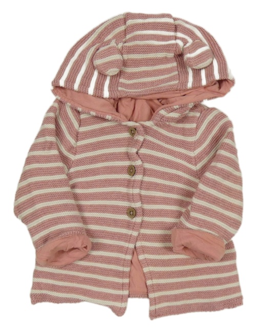 Ružovo-biely poruhovaný prepínaci podšitý sveter s kapucňou Tu