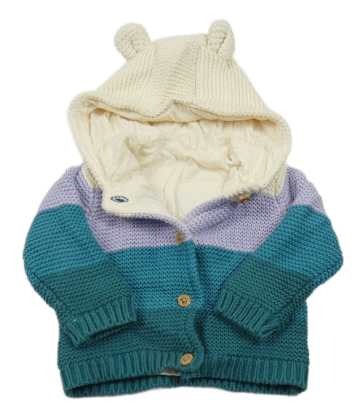 Smetanovo-lila-zelený pruhovaný podšitý sveter s kapucňou M&S