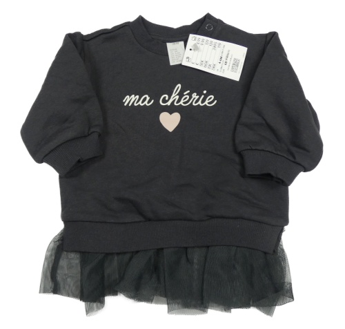Nové - čiernošedá mikina s nápisom a srdiečkom a tylovým volánikom H&M
