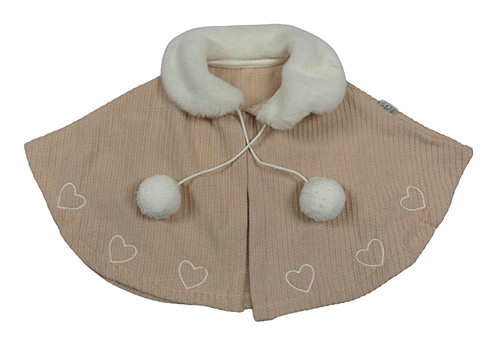 Pudrové teplákové pončo s kožešinou a srdiečkami