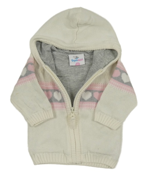 Bielo-ružovo-sivý podšitý prepínaci sveter so srdiečkami a kapucňou Topomini
