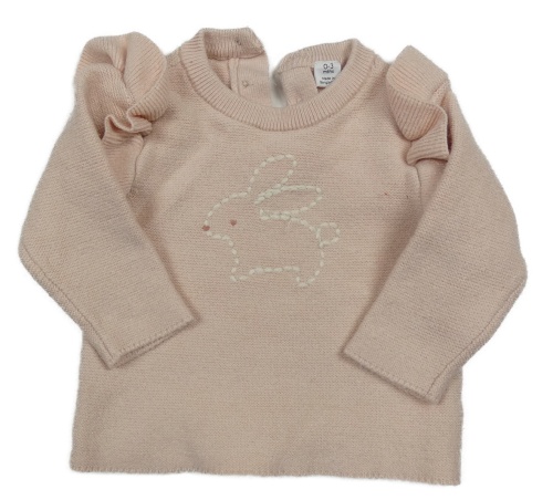 Svetloružový sveter so zajícem a volánikmi M&S