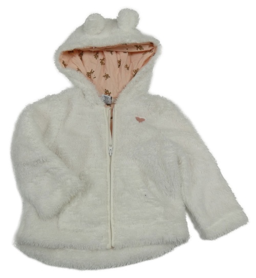 Biela chlpatá podšitá prepínaci mikina so srdcem a kapucňou Dopodopo