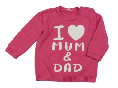 Fuchsiový sveter s nápisom a srdcem Benetton
