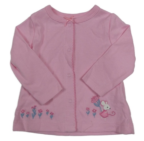 Růžové propínací mikinotriko s myškou a kvietkami a mašličkou