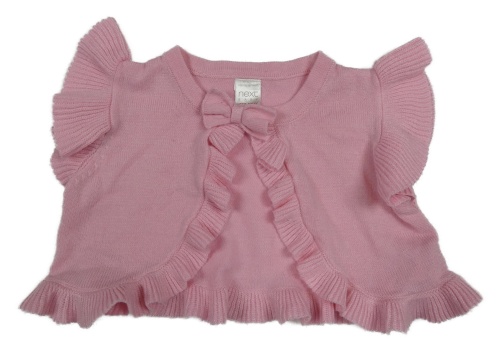 Ružová pletená prepínaci vesta s mašlou a volánikmi Next