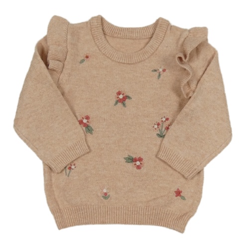 Pudrový melírovaný sveter s kvietkami a volánikmi George