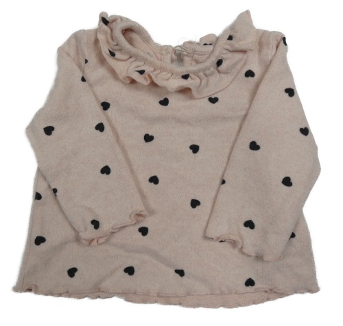 Svetloružový melírovaný úpletový sveter so srdiečkami a volánikom Matalan