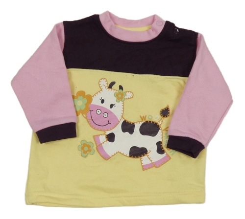 Žlto-lilkovo-ružová tepláková mikina s kravičkou