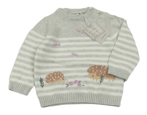 Nové - svetlošedá -biely pruhovaný melírovaný sveter s ježečky a vážkami John Lewis
