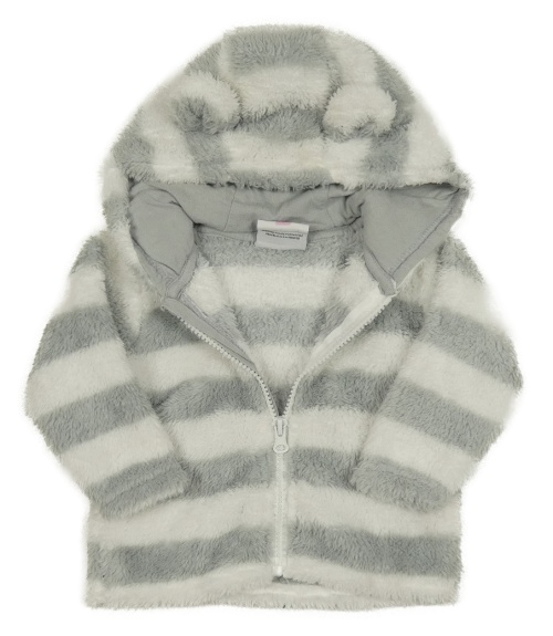 Bielo-sivá pruhovaná chlpatá prepínaci mikina s kapucňou Topomini