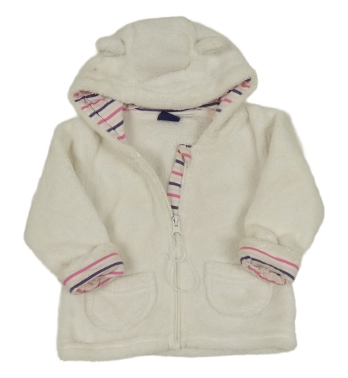 Biela chlpatá prepínaci mikina s kapucňou a prúžkami Lupilu