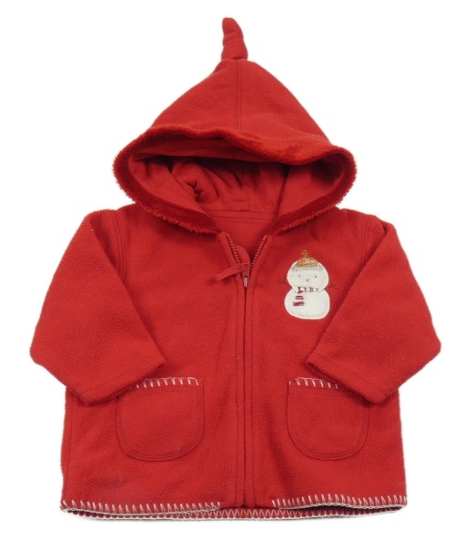 Červená fleecová prepínaci mikina so sněhulákem a kapucňou Mothercare