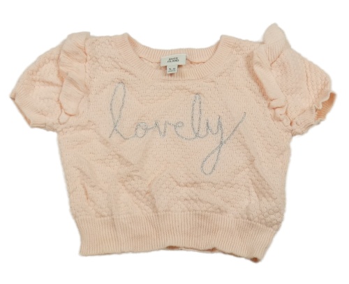 Broskvová vzorovaná pletená vesta s nápisom a volánikmi RIVER ISLAND