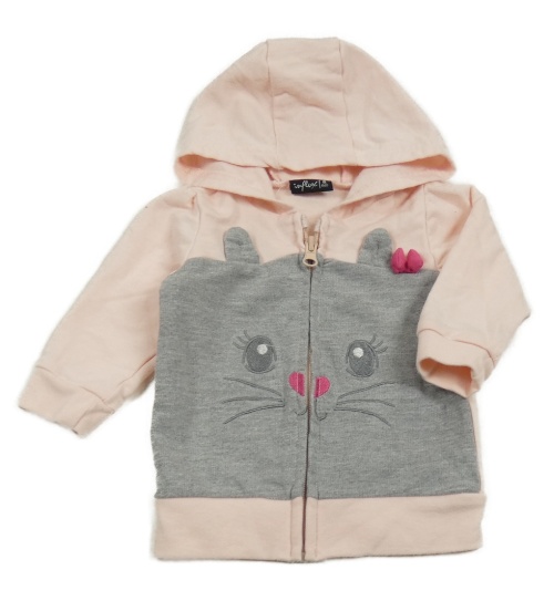 Ružovo-sivá propnací mikina s mačičkou a kapucňou