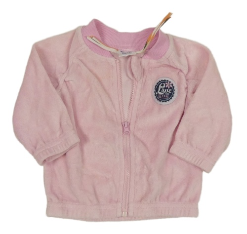 Svetloružová zamatová prepínaci mikina s nášivkou DIRKJE