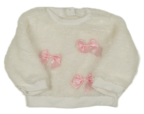 Smotanová chlpatá mikina s ružovými mašľami SHEIN