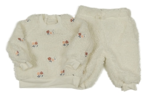 2set - Biela huňatá kvetovaná mikina + tepláky