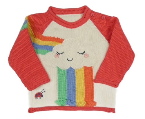 Smetanovo-jahodový sveter s mrakem a dúhou Nutmeg
