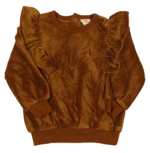Medová rebrovaná zamatová mikina s volánikmi HEMA