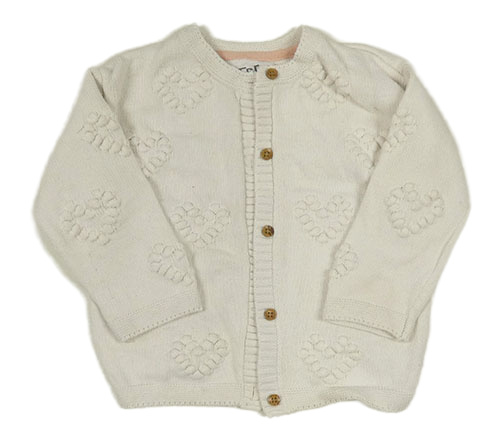 Biely prepínaci sveter so srdíčky z bambulek F&F