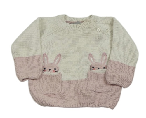 Bielo-ružový sveter s vreckami a králikmi Primark