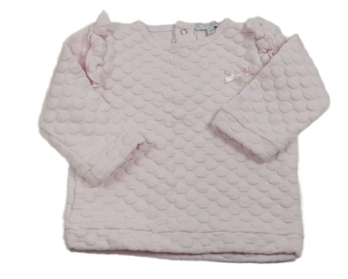 Svetloružová bodkovaná á mikina s mašlou a volánikmi