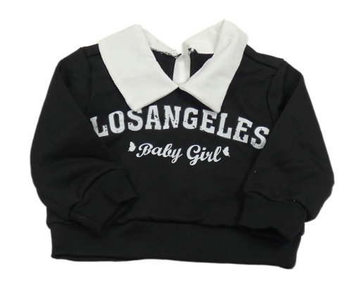 Čierna mikina s nápisom a bielým golierikom Shein