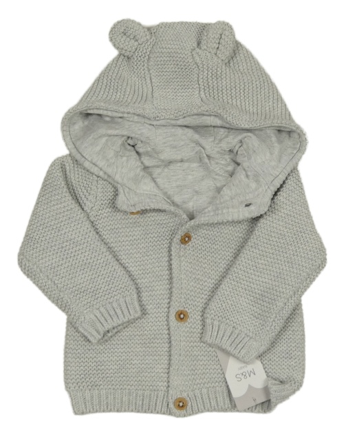• Nové - svetlosivý melírovaný prepínaci podšitý sveter s kapucňou s uškami M&S