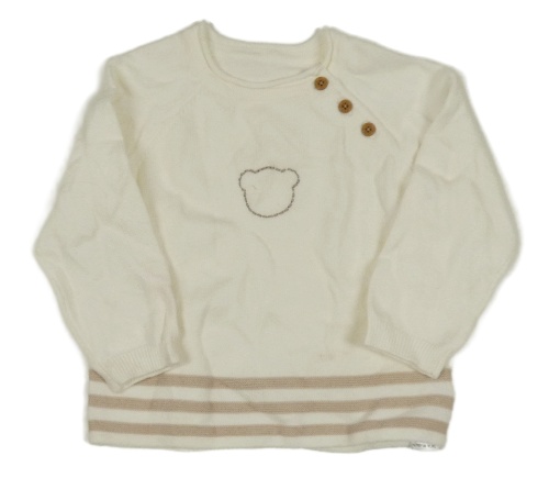 Smotanový sveter s prúžkami a medvedíkom Nutmeg