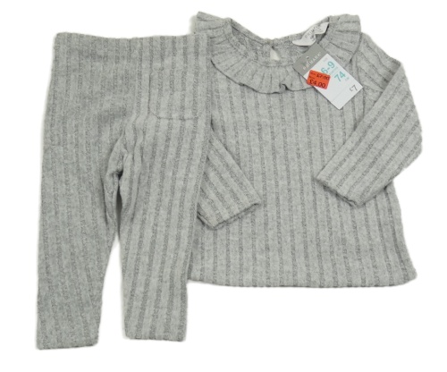 Nové - 2Set - Šedé melírované žebrované úpletové mikinotriko s volánkem + nohavice PRIMARK